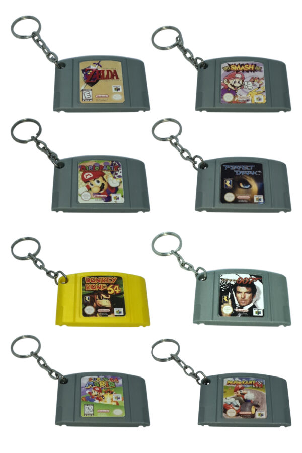 Ideal como accesorio para llaves, mochilas o estuches, también funciona como elemento decorativo en setups gamer, vitrinas o escritorios temáticos. Su estética nostálgica y acabado detallado lo convierten en un regalo perfecto para quienes vivieron la magia de los 64 bits.